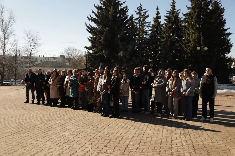 заместитель главы администрации Белгорода Инна Тяпутина, депутат Белгородского городского Совета и участник специальной военной операции Алексей Клыков, сослуживец Иван Наумов, ректор университета Елена Исаенко и мама героя Ольга Соснина.