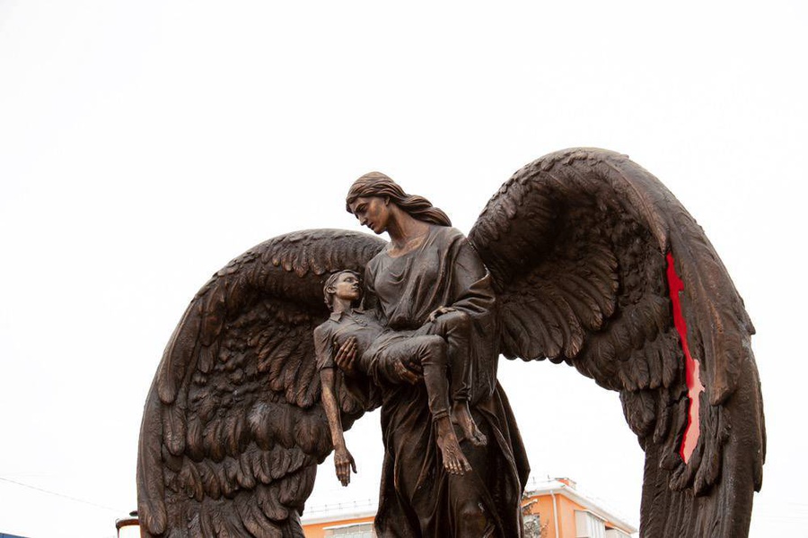 Митрополит Белгородский и Старооскольский Иоанн освятил памятник — уникальный символ памяти: ангел, бережно держащий ребёнка, чьи крылья образуют сердце. Это сердце помнит каждую потерю и продолжает биться, несмотря на раны. Красный свет, проступающий в сколотом крыле, отражает нашу общую боль и любовь к тем, кого уже нет рядом