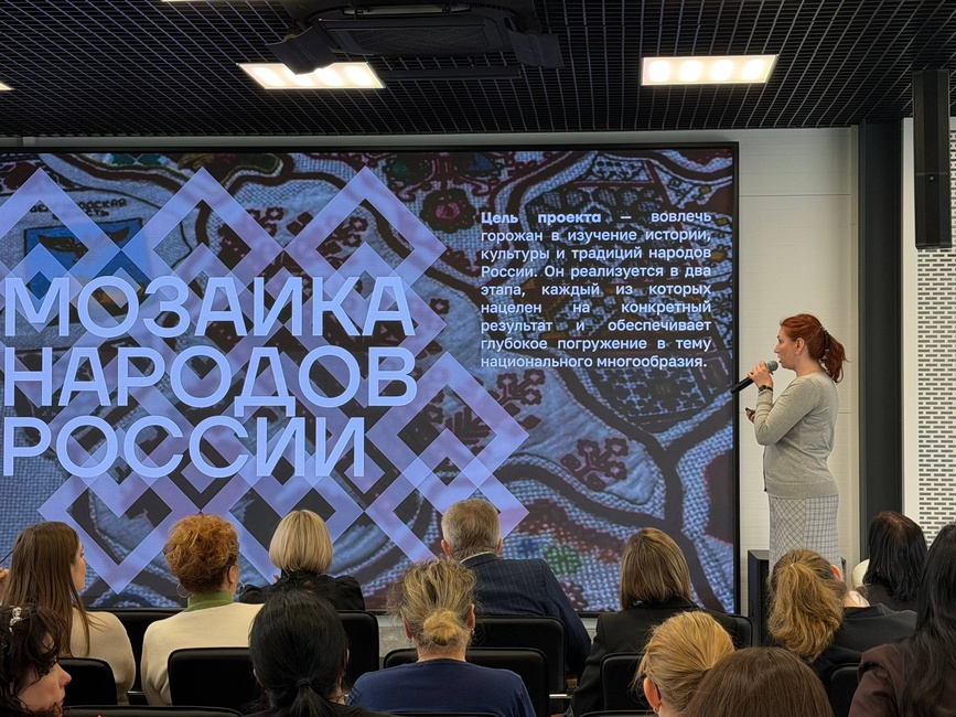 В лектории культурного центра «Октябрь» состоялась презентация проекта «Мозаика народов России» — инициатива, направленная на знакомство школьников с культурным многообразием нашей страны На встрече собрались представители образовательных и культурных учреждений города, чтобы обсудить, как сделать работу более живой, интересной и вовлекающей. Проект призван помочь детям глубже понять традиции народов России, научиться уважению, диалогу и единству С приветственным словом выступили руководитель управления культуры Лесных Ольга Александровна и руководитель управления образования Ковалев Алексей Юрьевич. Также участники ознакомились с проектом в формате презентации Атмосферу творчества создал вокальный коллектив «Элен и ребята» и яркий осетинский танец «хонга кафт» от школы танцев «FARN» Проект «Мозаика народов России» — это не просто цикл мероприятий, а новый шаг к формированию среды уважения и взаимопонимания среди подрастающего поколения.
